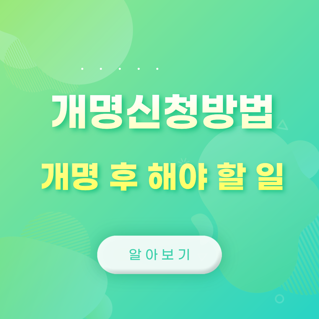 개명 후의 변경 사항들을 잘 준비하고 관리한다면, 새로운 이름으로의 삶을 더욱 원활하게 시작할 수 있을 거예요. 개명이라는 큰 결정을 내린 만큼, 새로운 이름으로 더욱 행복하고 의미 있는 삶을 살아가시길 바랍니다! 🍀