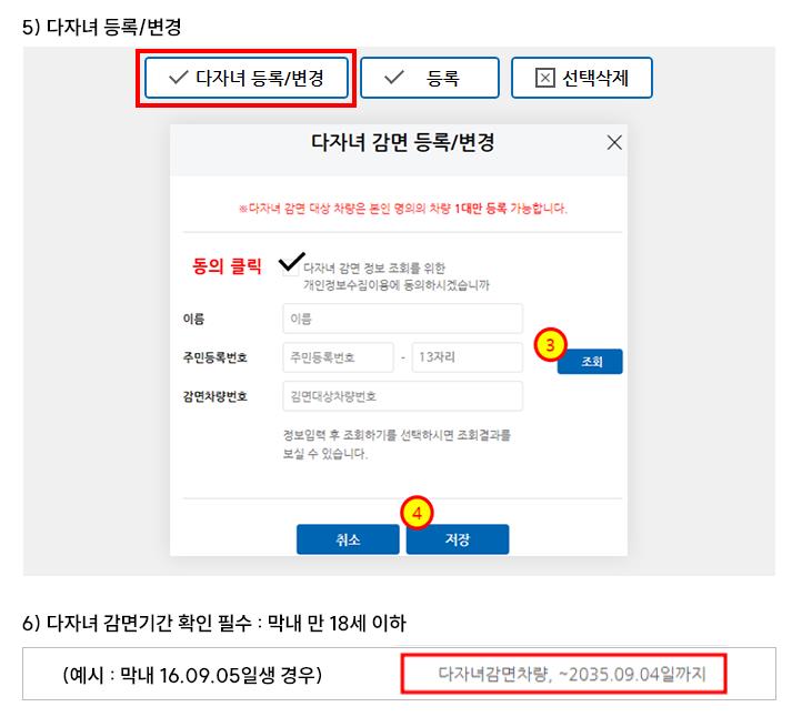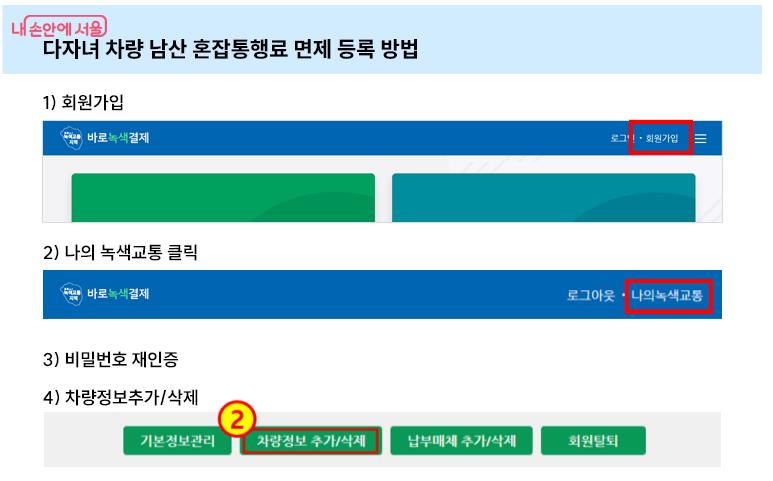 다자녀 차량 남산 혼잡통행료 면제 등록 방법