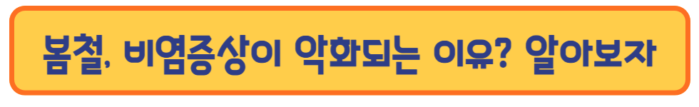 치료법과 관리방법을 알기전에 봄철 비염 증상이 더 심해지는 이유에 대해 궁금하시면 아래 확인 한번 해보세요~ ! 왜 봄철에 유난히 비염증상이 심한지, 나만 이런게 아니구나 느끼실 거예요~ ↓↓