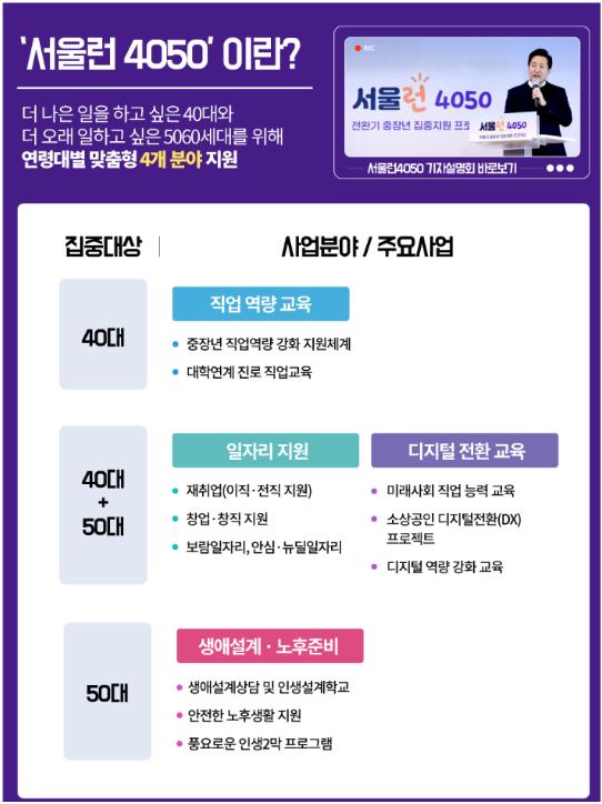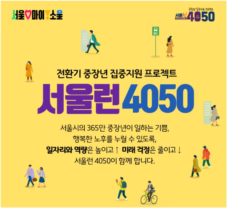 서울런 4050은 중장년 세대가 인생 2막을 준비할 수 있도록 다양한 정책을 펼쳐 사회적 활동 기회를 확대하고자 합니다. 많은 관심 부탁드립니다!