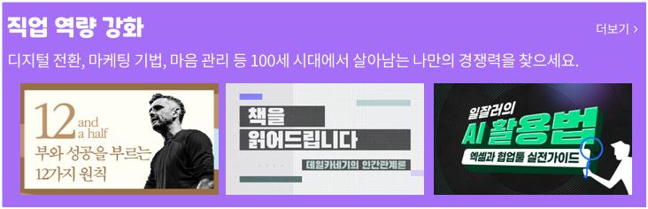 - 직업역량교육 무료 콘텐츠: 자격증 강좌, MS오피스, 챗GPT 활용법, 숏폼 제작 등 트렌드 반영한 강좌 제공