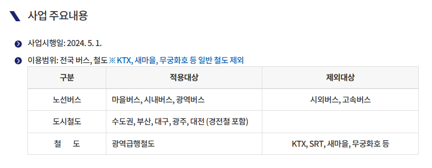 - 전국의 모든 대중교통수단 대상으로 지원