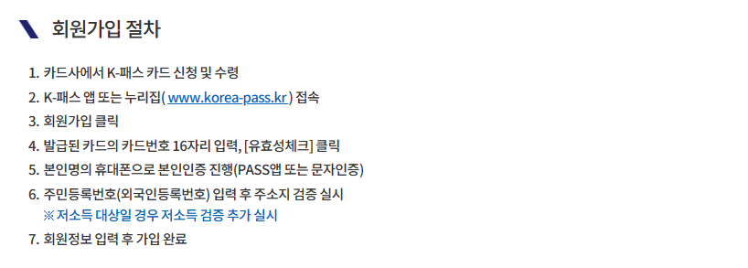 - 발급받은 K-패스의 공식 앱이나 홈페이지에 주소지를 입력하여 혜택을 받을 수 있습니다.