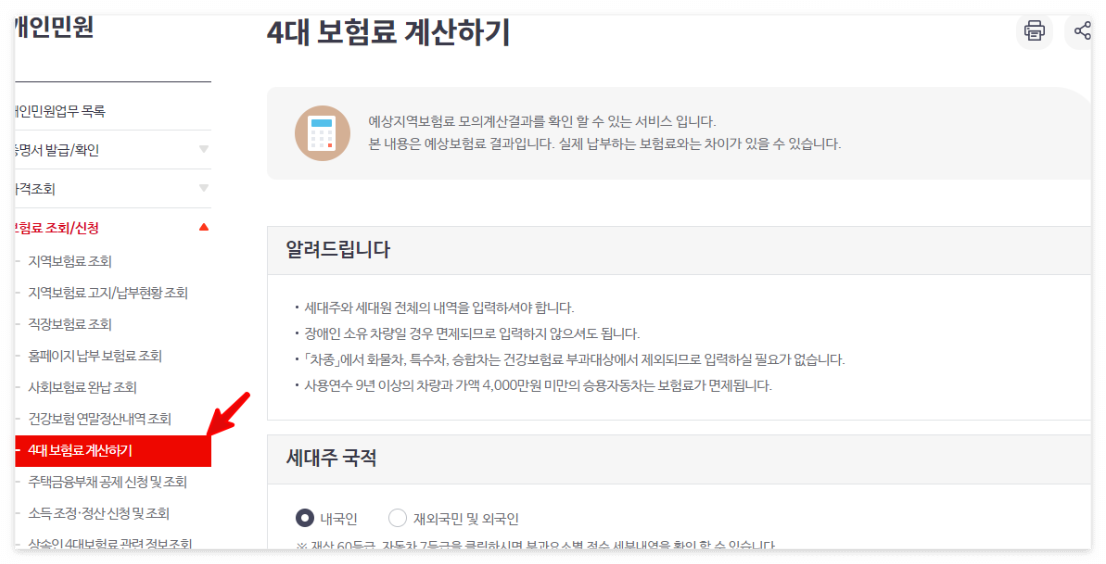 - 보험료 계산 방식 : 당해 연도 소득에만 건강보험료가 부과되며, 다음 해 4월에는 전년도 건강보험료를 정산합니다. 전년도 소득, 재산, 자동차 등을 기준으로 보험료가 조정됩니다.