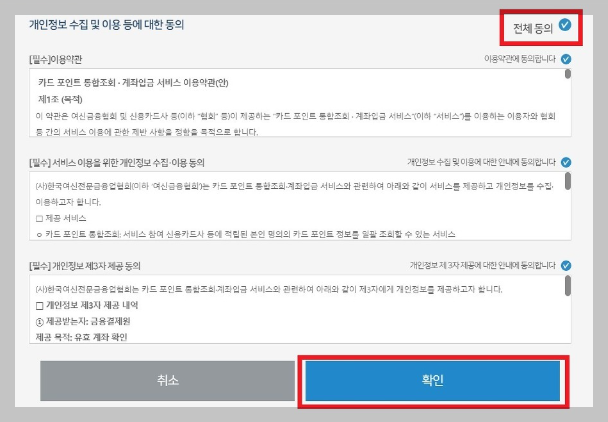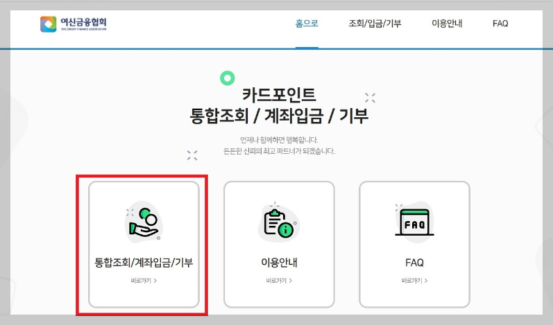 여신금융협회 카드포인트 통합조회 계좌입금