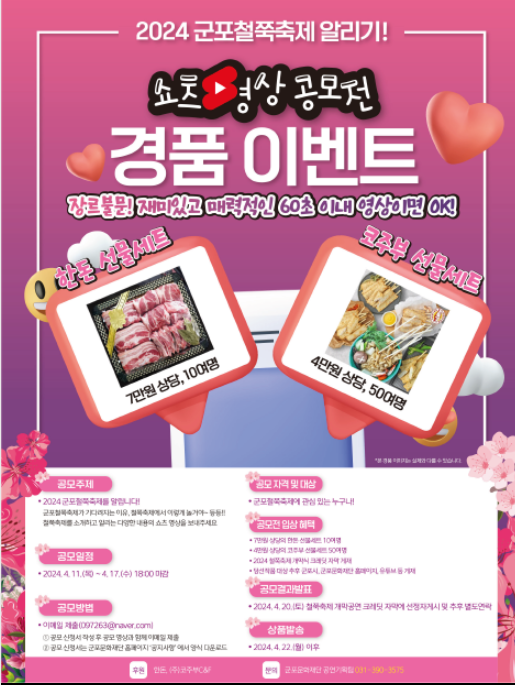 이렇게 다채로운 행사와 프로그램이 마련된 2024 군포철쭉축제에 여러분들도 함께 참여해 보세요! 자연 속에서 봄을 만끽하며 즐거운 시간을 보낼 수 있을 거예요.
