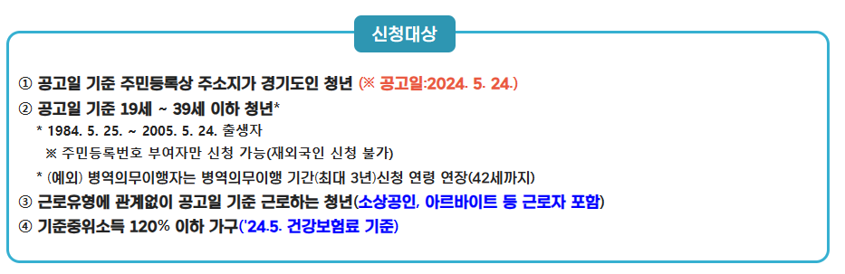 - 경기도에 거주하는 19세 이상 ~ 39세 이하 청년