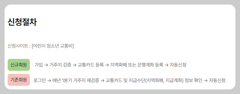 - 지급 방법 : 교통비 신청시 등록한 지역화폐 또는 계좌로 지급