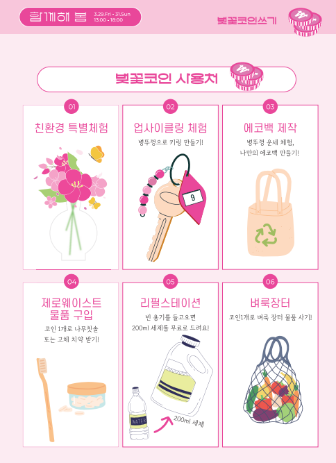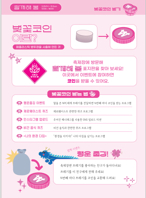 - ESG 프로그램 : 시민참여 친환경 프로젝트 '함께해 봄' 등 환경을 생각하는 프로그램도 준비되어 있습니다.