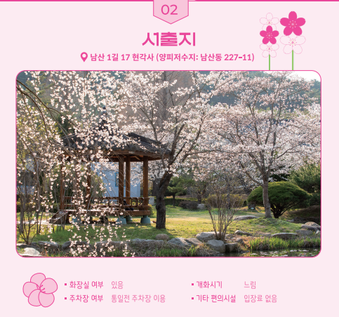 - 체험 프로그램 : 벚꽃타투·무료사진인화, 벚꽃놀이터 등 참여형 프로그램이 마련되어 있어요.