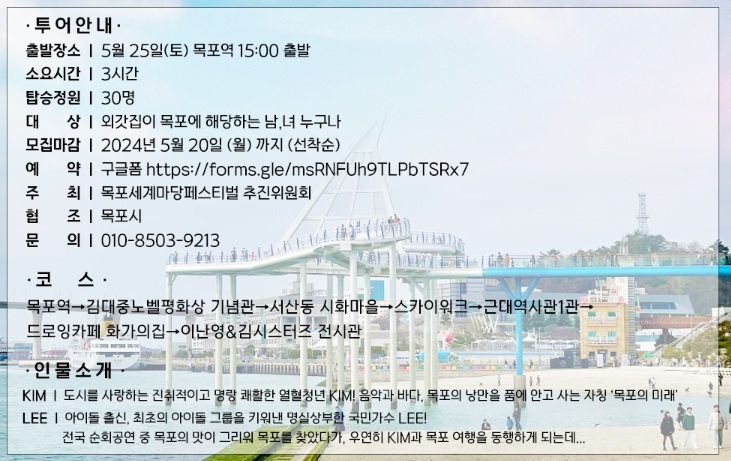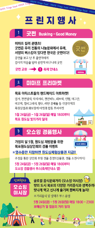 - 장소 : 목포 원도심 일대 (로데오 광장, 차 안 다니는 거리, 빛의 거리 등)