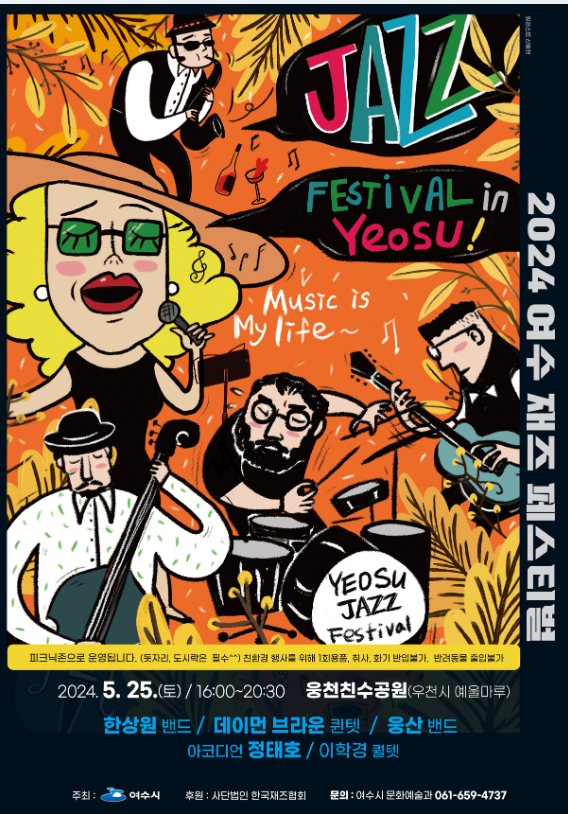 안녕하세요, 여러분! 오늘은 여러분께 여수에서 열리는 멋진 행사, 2024 여수 재즈 페스티벌에 대한 정보를 소개해드리려고 합니다. 5월의 따뜻한 날씨 속에서 즐길 수 있는 최고의 재즈 공연, 함께 알아볼까요?