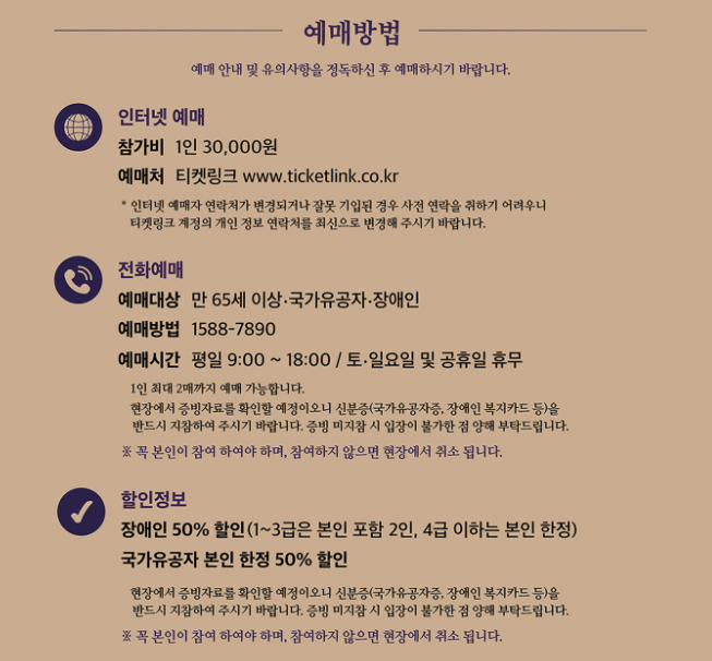 - 할인관람권(장애인, 국가유공자) : 15,000원