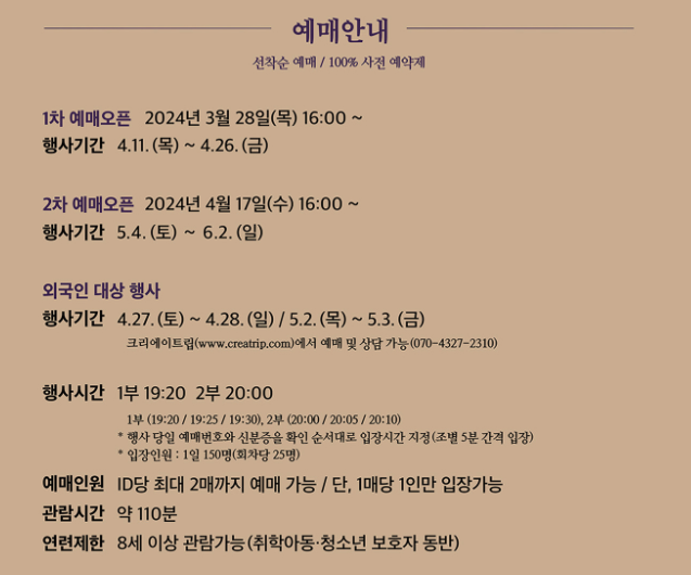 1. 예매 기간 : 2024년 3월 28일/4월 17일
