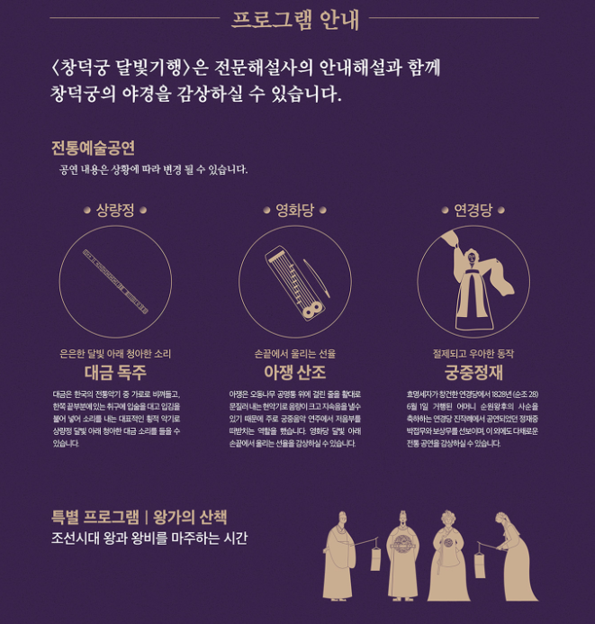 - 창덕궁 달빛기행은 100% 사전 예약제로 운영