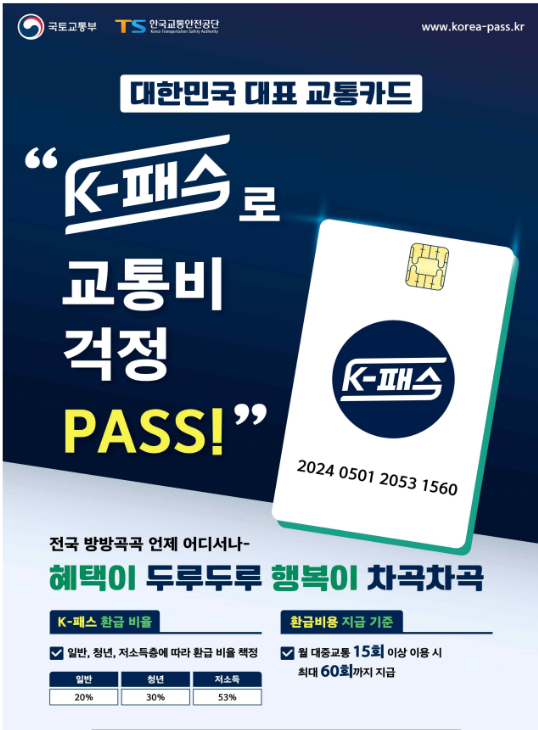 - K패스는 대중교통비 지원 정책으로, 월 15회 이상 대중교통을 이용하면 지출 금액의 최대 53%를 환급받을 수 있는 혜택을 제공합니다.